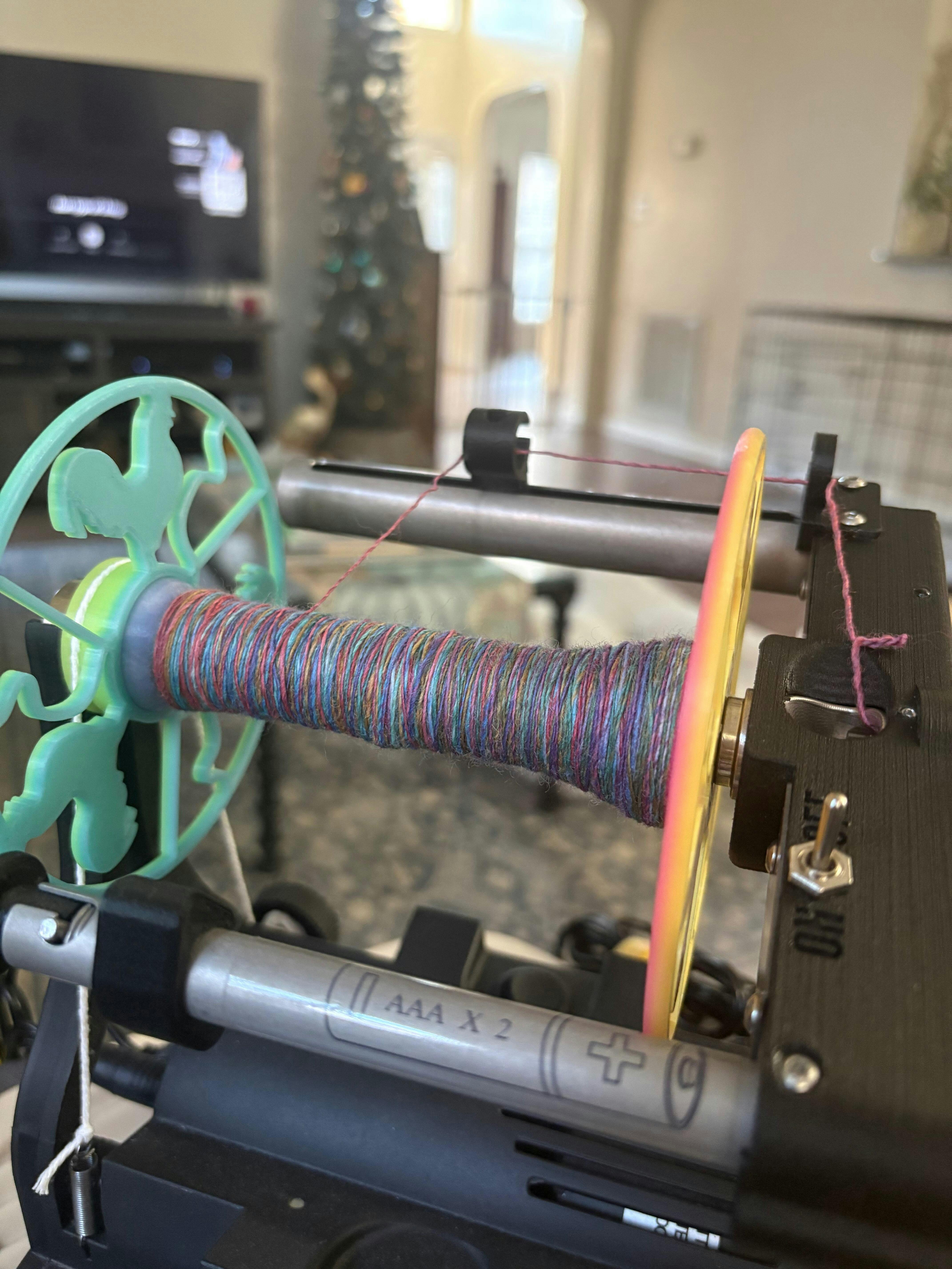 Every spinner, knitter, crocheter and fiber artist knows the feeling of playing "yarn chicken". That eep feeling when you don't quite know if you are going to make it through your project with what you have left. Or in spinning's case. Can you fit ALL that fiber on your bobbin??