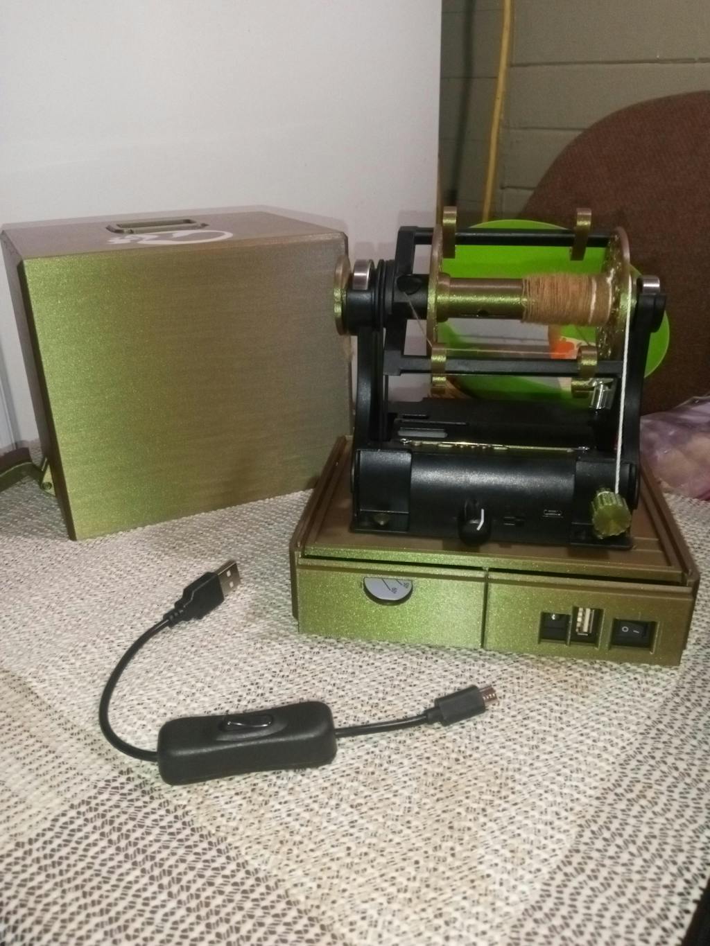 Built-in storage drawer fits battery packs, multiple bobbins (flat-packed), and fiber. It features a duel drawer that securely snaps your talentcell battery in place so it wont move. Leaving a second drawer open for your fiber, bobbins, and accessories. Both feature a finger gap to open your drawer and for cords to come out. This way you can spin without removing your battery!
